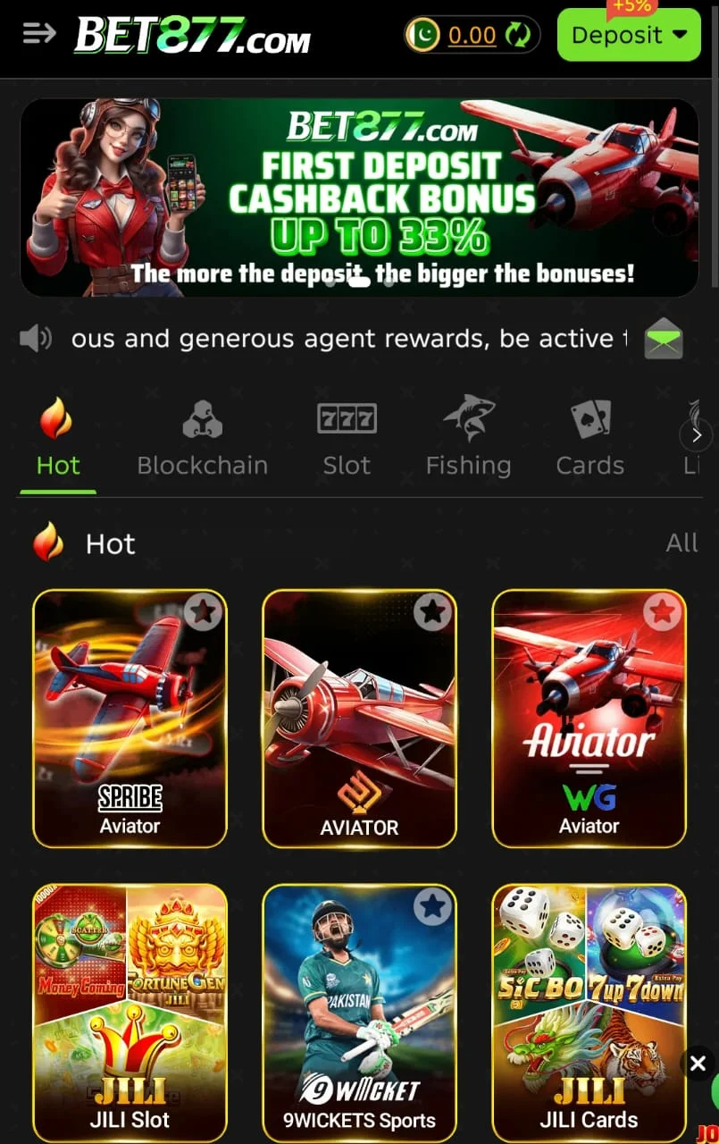 Bet877 Game is a rounded mobile gaming platform that caters specifically to Android users in Pakistan. With a selection of games support for local payment methods and a structured reward and referral system it offers both entertainment and earning potential in one place. The app is regularly. Backed by responsive customer support making it a reliable option for users interested in mobile gaming.